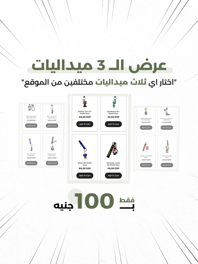 اختار أي ثلاث ميداليات مختلفين من الموقع من قسم الميداليات فقط بسعر 100ج !!