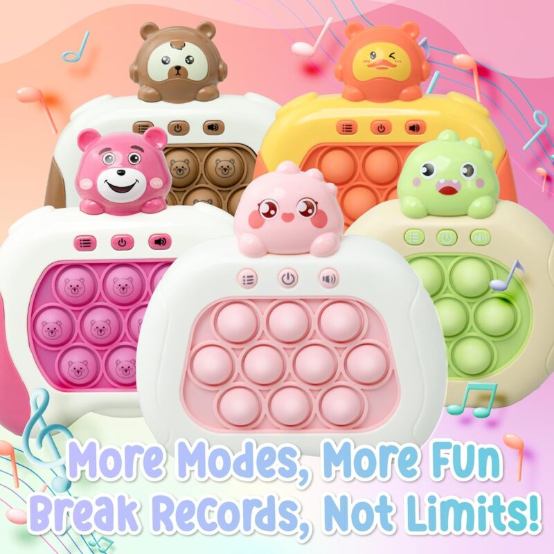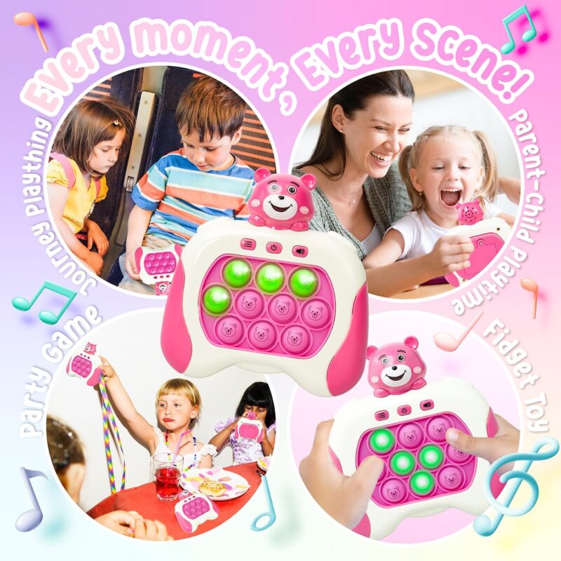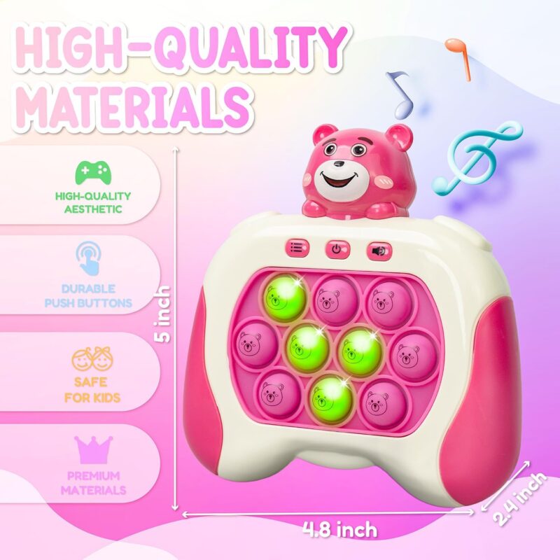 لعبة دفع سريع من مارلو اند باز مع وحدة تحكم في العاب بوب بيت، لعبة بوب فيدجيت مع بوبر الكتروني LED – تحسين سرعة رد فعل الاطفال وردود الفعل، لعبة فقاعية سريعة، العاب جيب (دب وردي)