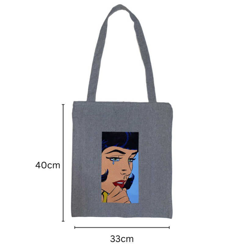 Be the first to review “Crying Girl Tote Bag – Grey”